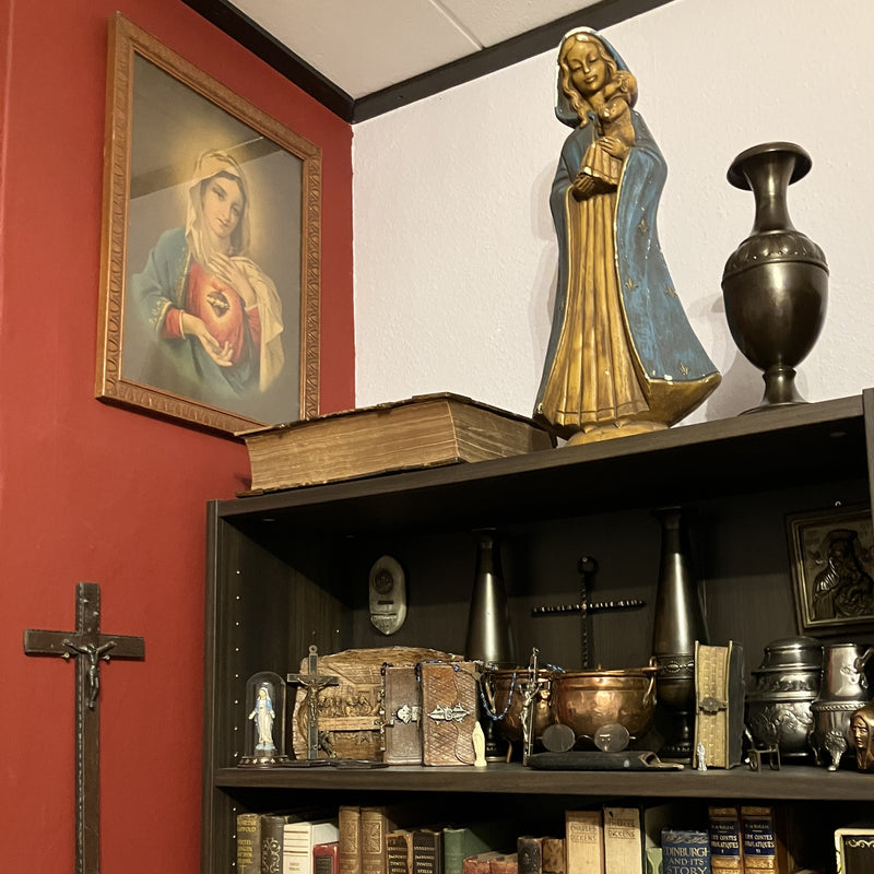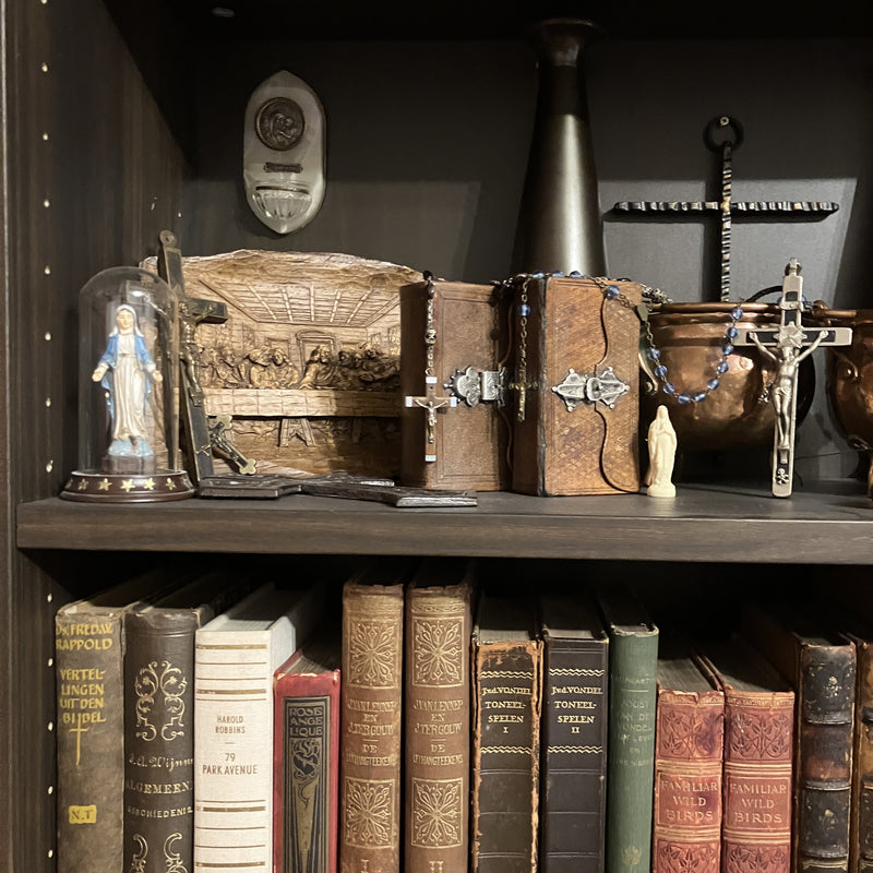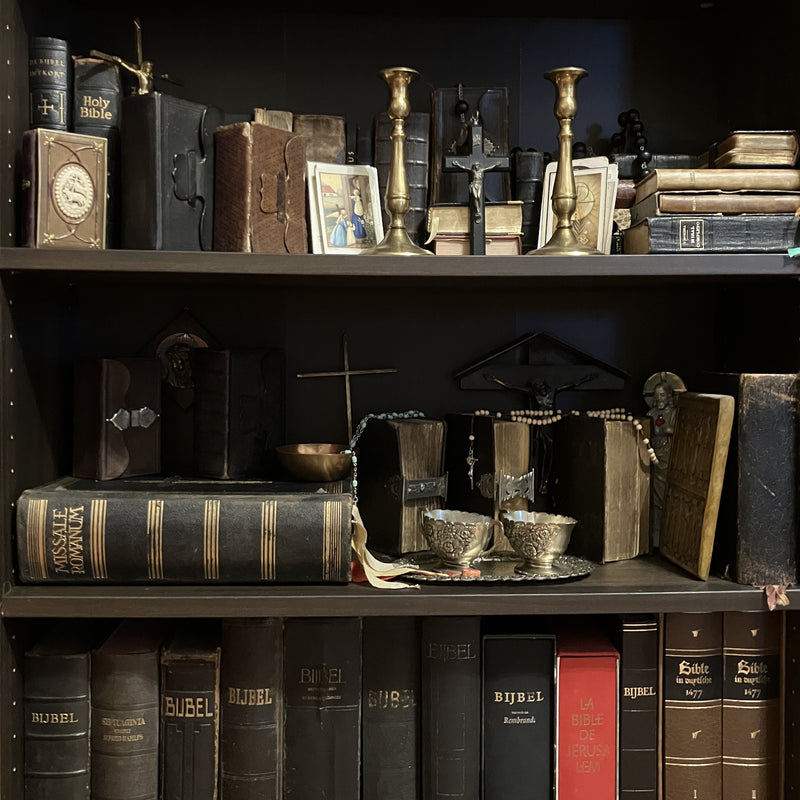 De originele verzameling van Ziggy bevatte meerdere categorieën, waaronder de meest noemenswaardige die je hier terug kunt vinden: oude boeken, bijbels, missalen, en andere Godsdienstelijke boeken. Daarnaast nog veel mooie decoratieve items zoals beeldjes, kristallen, en mineralen.